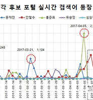 검색 포털 사이트의 '실시간 검색어'는 하루의 이슈를 빠르게 들여다 볼 수 있는 채널이다. 이전 대선 후보 TV 토론회도 시청율에서 보듯이 상당한 관심이 있었기 때문에 당연스래 실시간 검색어에 후보들의 이름을 올렸다.