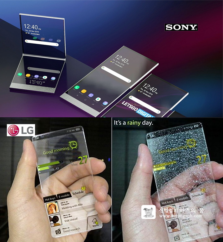투명 디스플레이를 적용한 스마트폰은 LG전자에서 이미 프로토타입을 선보인 바 있고, 소니도 특허를 출원해 놓은 상태로 알려져 있다. (사진출처 LetsGoDigital, 핑구야날자 블로그)