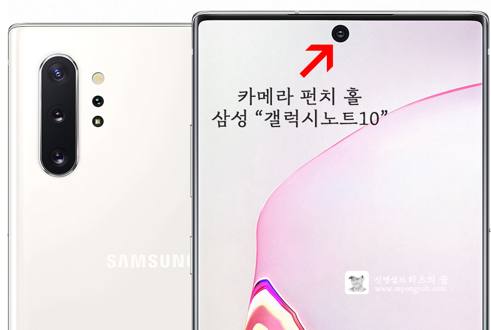 삼성 갤럭시노트10 은 전면 상단에 동그란 카메라 펀치 홀 하나 만 남기고 전체를 디스플레이로 채웠다. 즉 전면 스피커도 없앤 것이다. 디스플레이 화면 떨림으로 소리를 들려주는 '사운드 캐스팅사운드 온 디스플레이(SoD)' 기술을 적용하였다.
