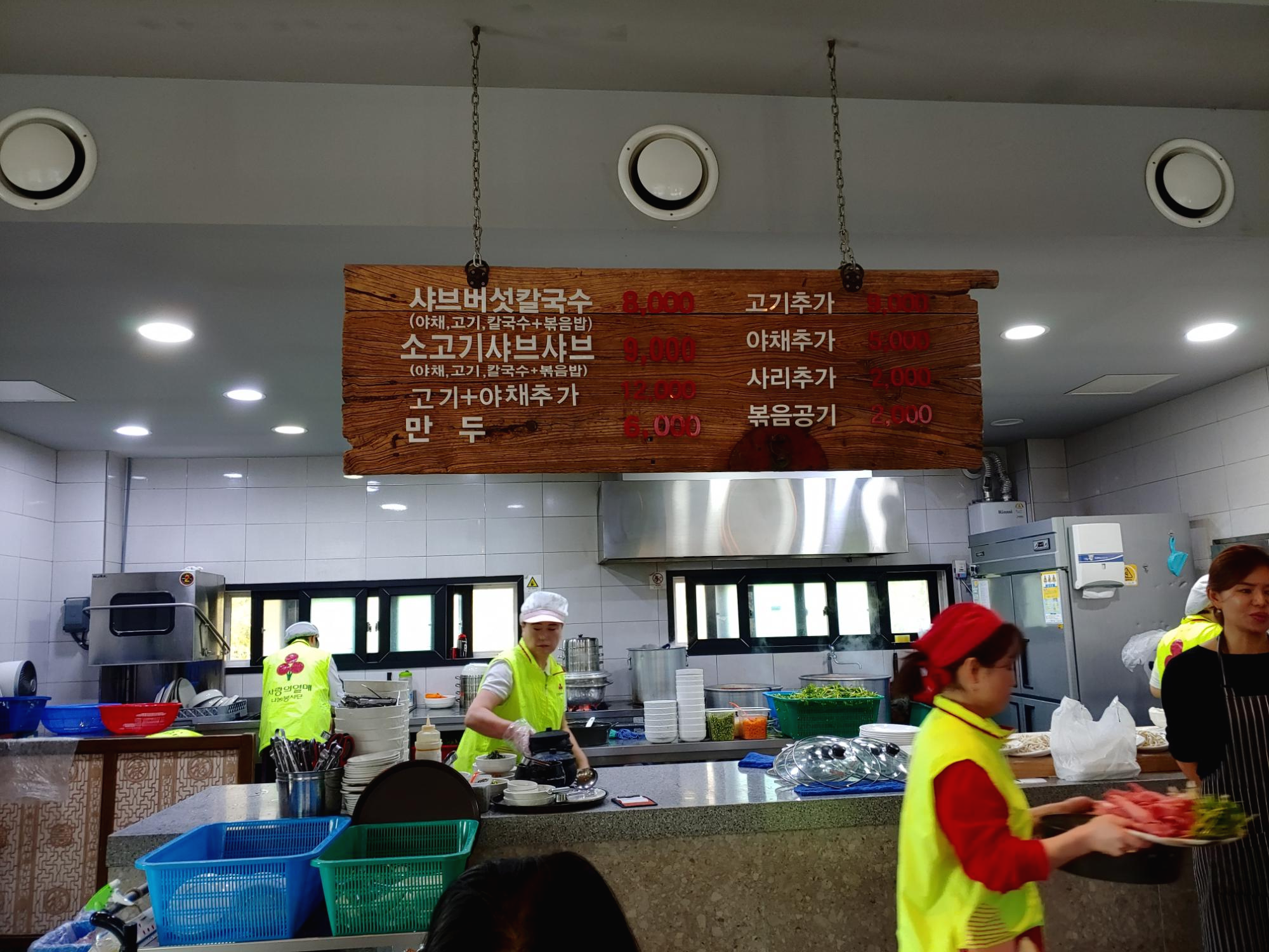 이날 음식은 버섯샤브칼국수 한가지를 주문할 수 있었고 가격은 8천원이다. 필자가 있는 한시간 가량 동안 대충 봐도 50여명 이상이 식사를 했으니 그것 만 해도 40만원이다. 하루 종일 판매하면 수백만원의 매출을 올릴 것으로 보이고, 그 금액 전부를 기부한다는 것이다.