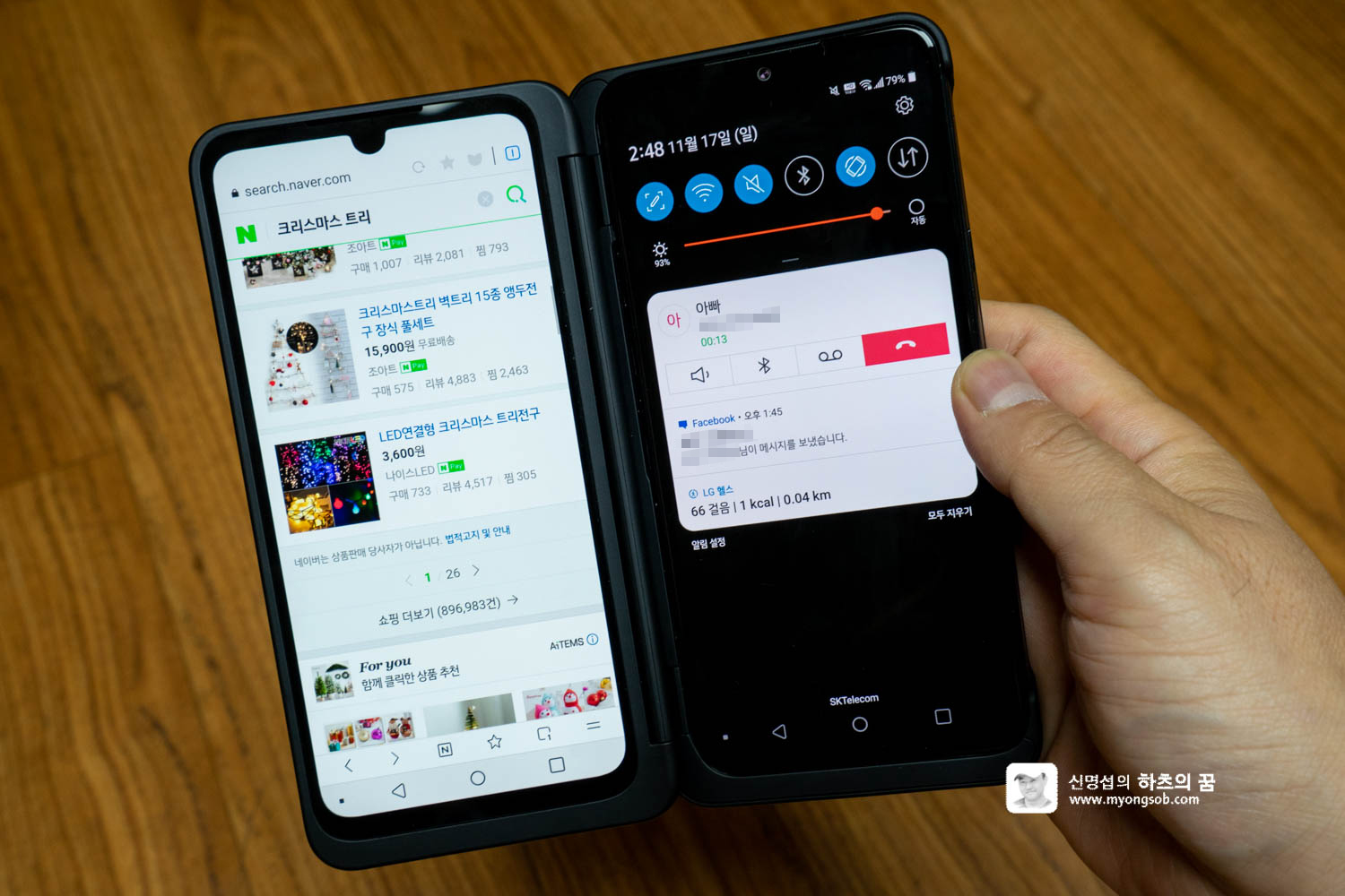 두개의 화면을 따로 이용할 수 있다는 것은 앱을 각각의 화면에서 실행하여 완벽한 멀티 태스킹이 가능하다는 것이다. 하나의 화면에서는 쇼핑을 하다가 전화가 오면 다른 화면에서 전화를 받을 수 있고, 카톡을 보내다가 궁금한 것이 있으면 다른 화면에서 웹 검색을 할 수 있다.