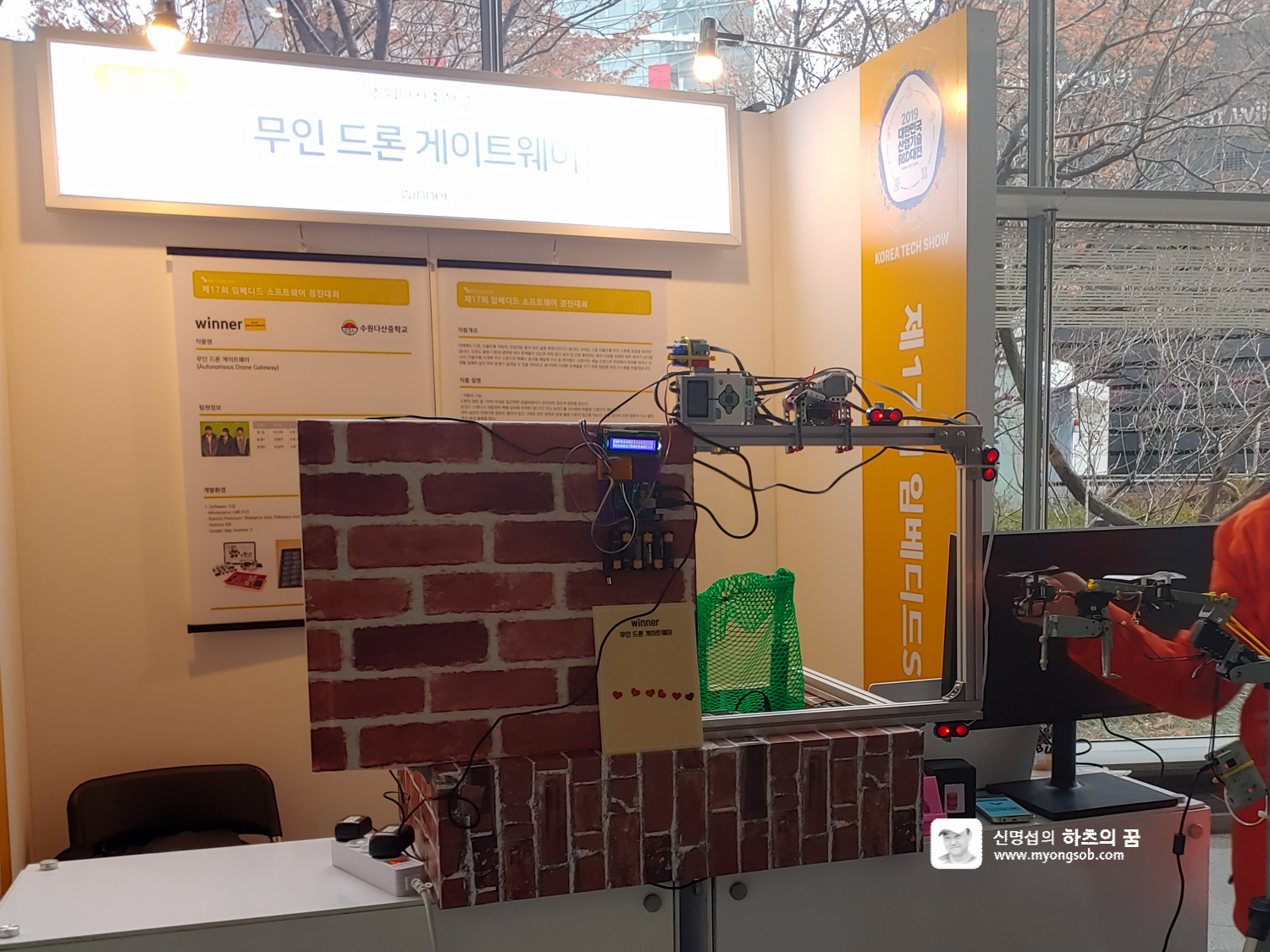 수원다산중학교는 '무인 드론 게이트웨이' 기기를 전시했다. 드론으로 택배 물품을 배송하고 해당 기기를 인식하여 출입 통제까지 가능하도록 설계를 하였다.