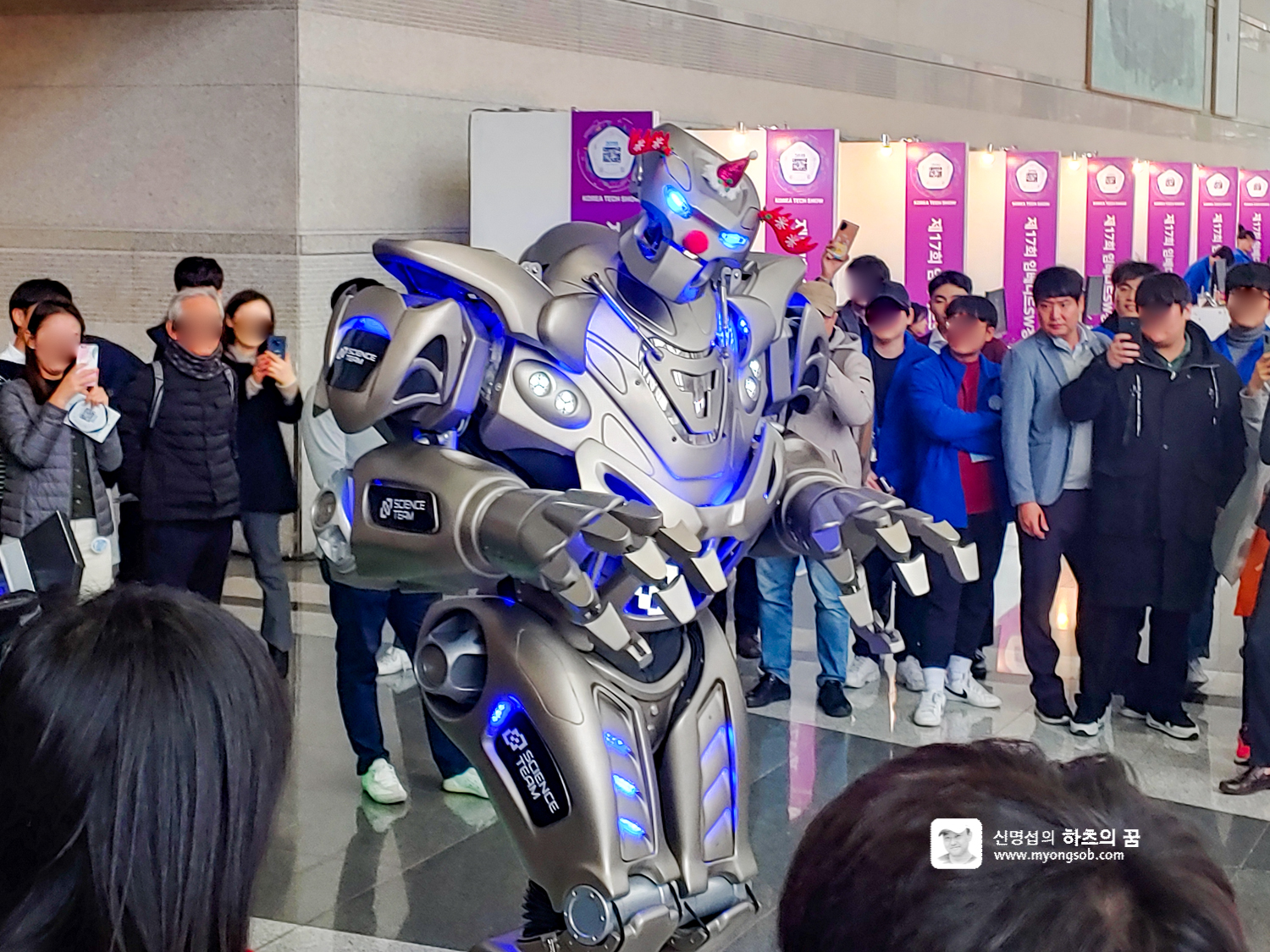 여러 전시를 돌아보던 중 많은 분들이 모여있는 곳에 가보니 사람보다 더 큰 로봇이 공연을 하고 있었다. 사이언스팀의 타이탄이란 로봇으로 관절의 움직임 및 동작이 사람과 거의 같은 수준으로 유연하게 움직이고 있었다.