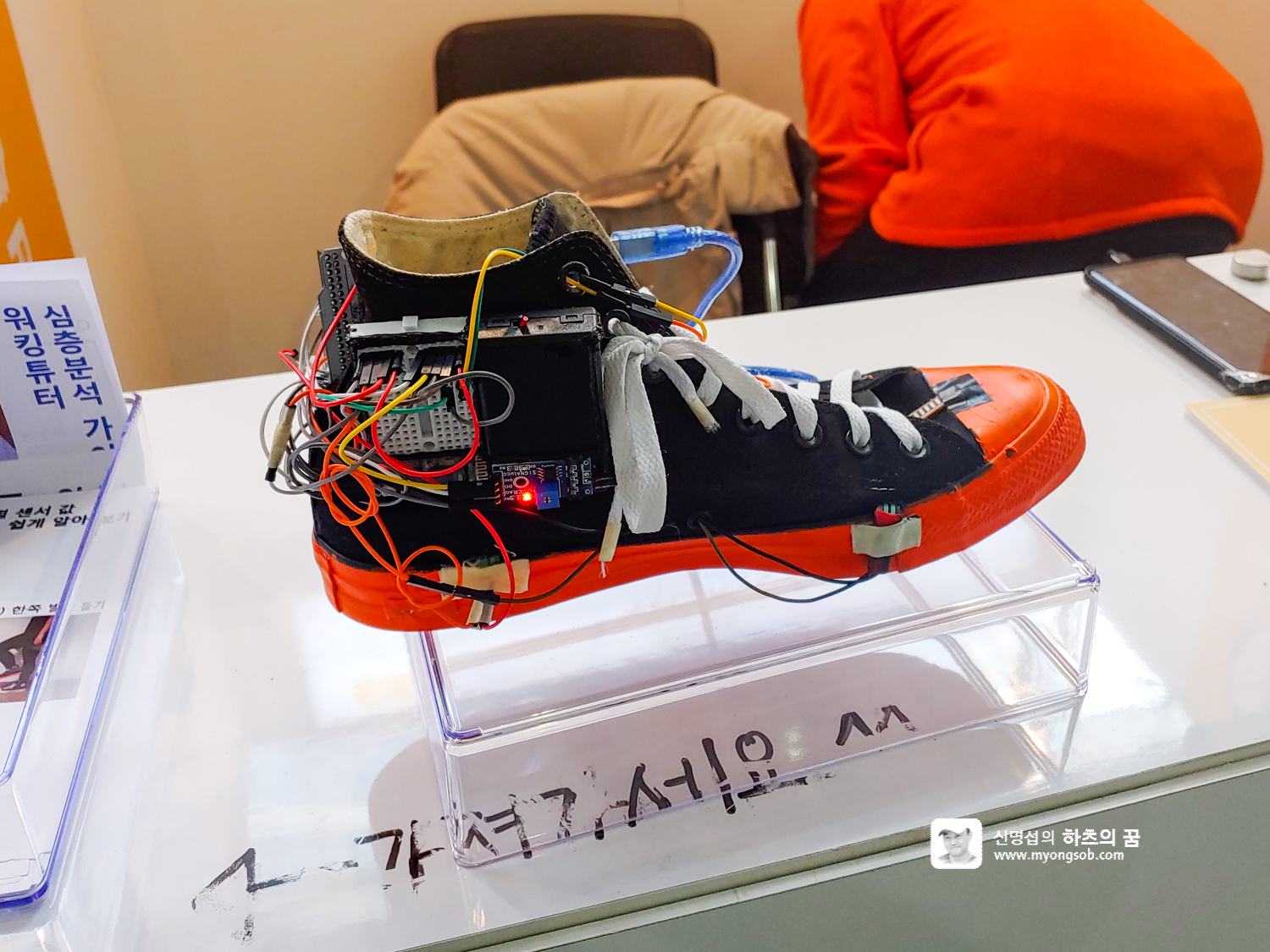 매송중학교의 '워킹튜터'는 신발에 다양한 장치를 적용하여 보행자세를 교정해준다. 가속도 센서, 압력 센서, 자이로 센서, 플렉스 센서, 충격 센서 등 다양한 센서가 걸음걸이를 확인하여 교정 정보를 제공한다.