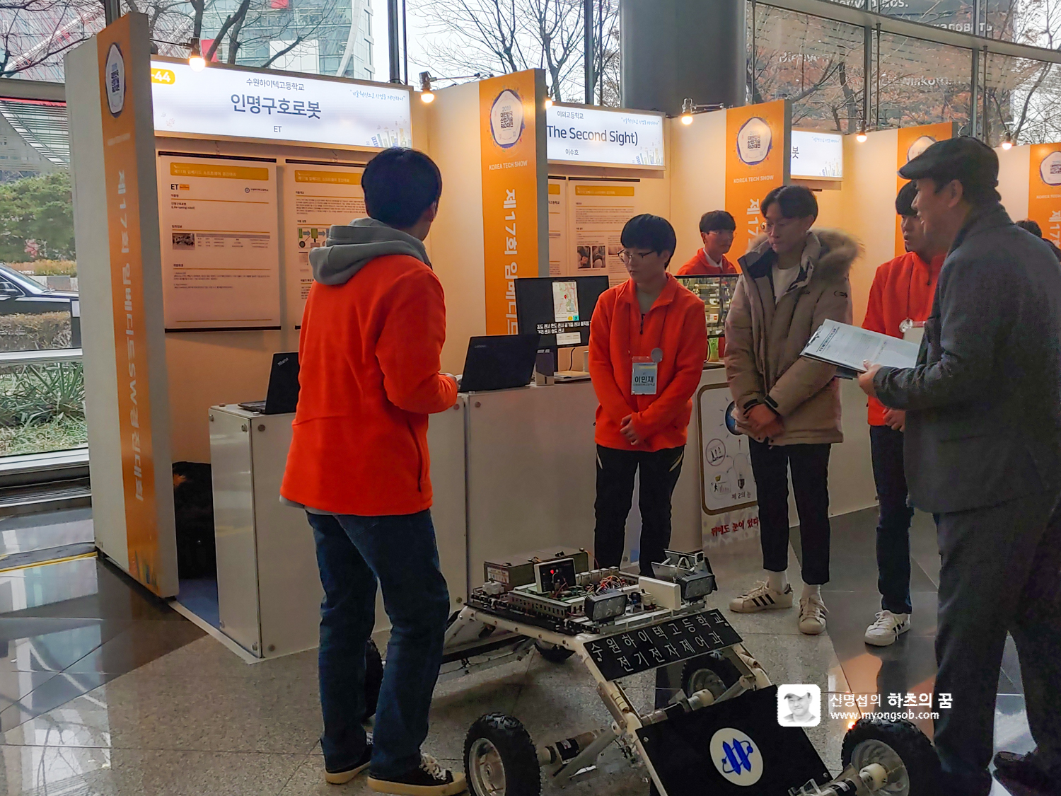 수원하이텍고등학교에서는 '인명구호로봇'을 선보였다. 화재 현장이나 수상 재난 등 사람이 접근하기 힘든 상황에 출동해 인명을 구조하는 로봇은 다양하게 연구가 되고 있다. 이날 선보인 로봇 또한 가능성은 무궁하다.