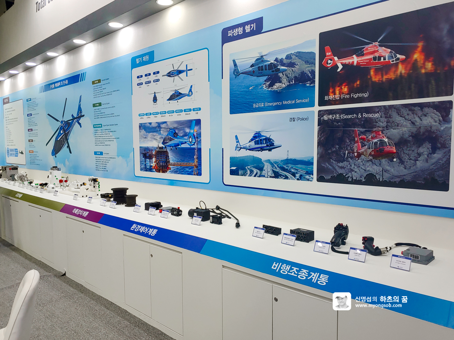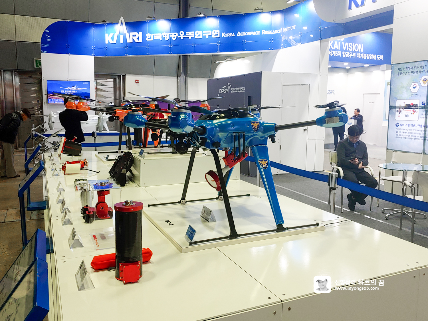 한국항곡우주연구원은 항공기 및 드론 등을 다수 전시하였다. 무인 항공기에 장착하여 재난 구조에 사용하는 다양한 장비를 하나씩 소개하고 있었다. 각 장비는 모듈화되어 있어서 필요한데로 항공기나 드론에 장착하여 사용할 수 있도록 설계되어 있었다.