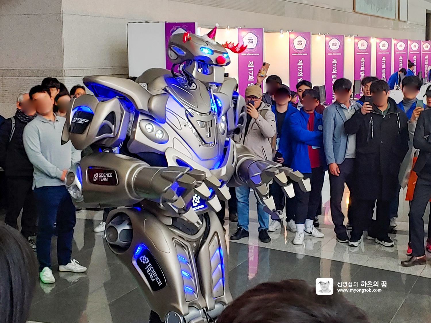 전시장 입구에 많은 사람들이 모여 있길래 가보니 대형 로봇이 마치 사람처럼 움직이면서 캐롤에 맞춰 몸을 들썩이고, 청중의 얼굴을 보며 대화를 하듯 유연하게 동작하고 있다.