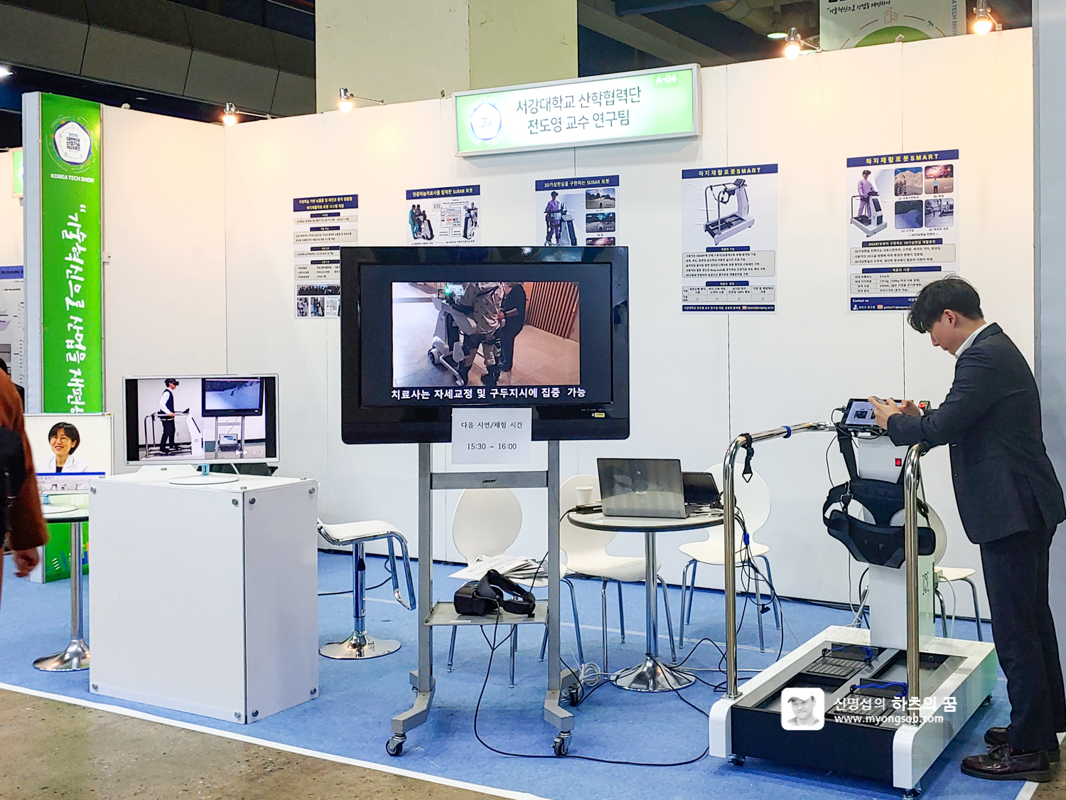 서강대학교에서 출품한 걸으면서 자세를 교정하는 기구도 눈에 띄었다. 참여하는 분은 VR 고글을 착용하고 가상 공간에서 안내에 따라 걷는 방식으로 보인다.