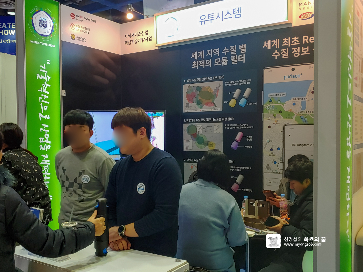 유튜시스템은 작은 필터로 물을 걸러낼 수 있는 제품을 전시하고 있었다. 세계 여러 지역의 수질 별로 최적의 물을 얻을 수 있는 모듈형 필터를 개발하였고, 텀블러에 적용하면 들고 다니면서 안전한 물을 마실 수 있다.