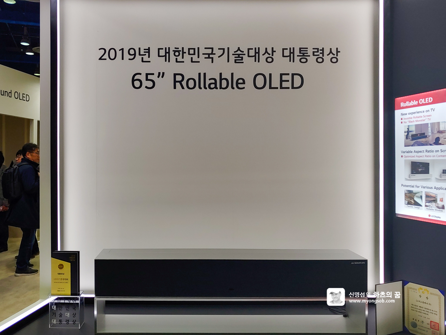 LG전자는 디스플레이 기술 분야로써 여러가지의 TV를 전시하고 있었다. 특히 많은 관심을 받고 있는 65인치형 LG 롤러블 TV 앞에는 많은 사람들이 신기한듯 바라보고 있었다.