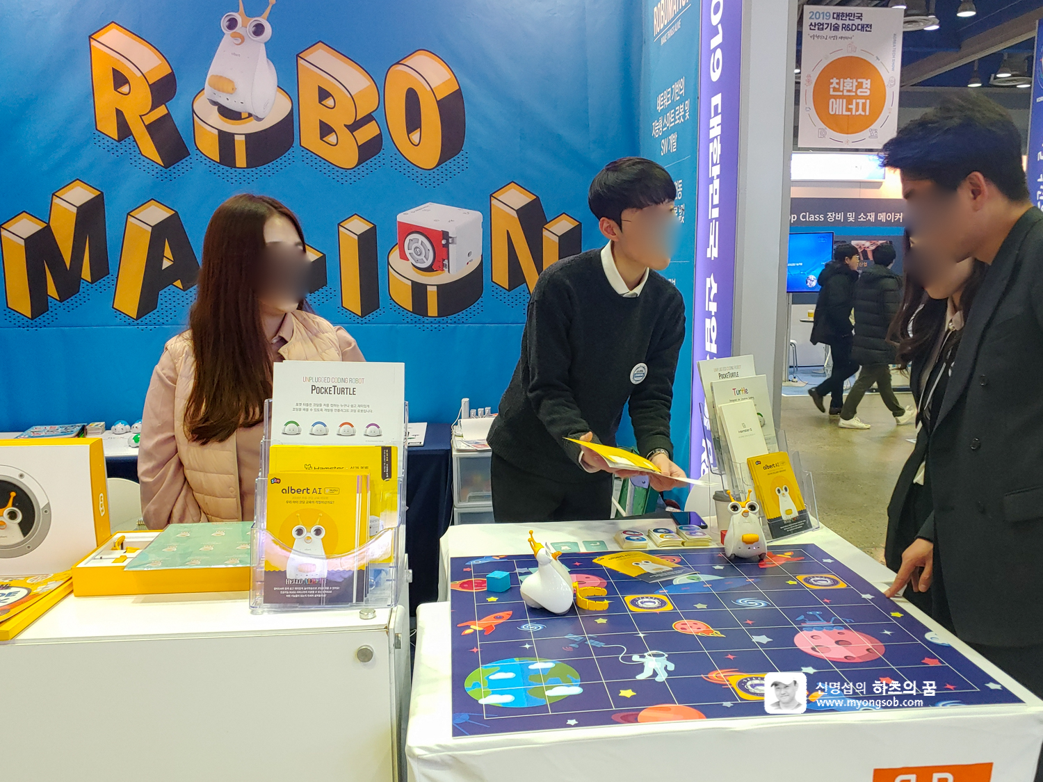 간단한 프로그래밍을 해서 이용할 수 있는 AI 코딩로봇 알버트AI(Albert AI)도 전시되어 있다. 귀여운 로봇과 서로 상호작용을 하면서 학습할 수 있어서 조금은 쉽게 4차산업혁명의 시작인 컴퓨팅 알고리즘을 학습할 수 있다.