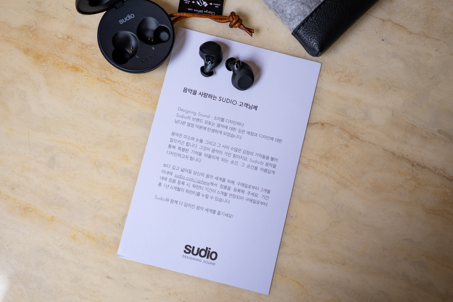 박스 안에는 '음악을 사랑하는 SUDIO 고개님께' 로 시작하는 감사 카드가 들어 있다. 이런 작은 정성이 제품을 좀 더 감성적으로 만들게 된다.