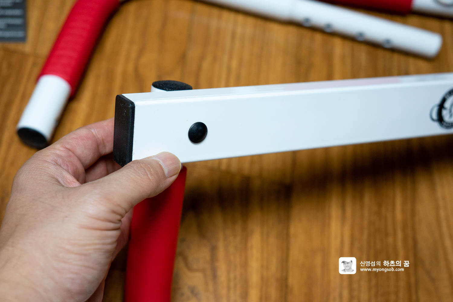 철봉을 조립할 때 문들 상단에 걸게 되는 부분일 끼울 때 벽면에 대는 부품의 앞뒤를 확인할 필요가 있다. 보호 고무가 붙어 있는 부분이 벽에 걸었을 때 벽에 닿는 부분이다.