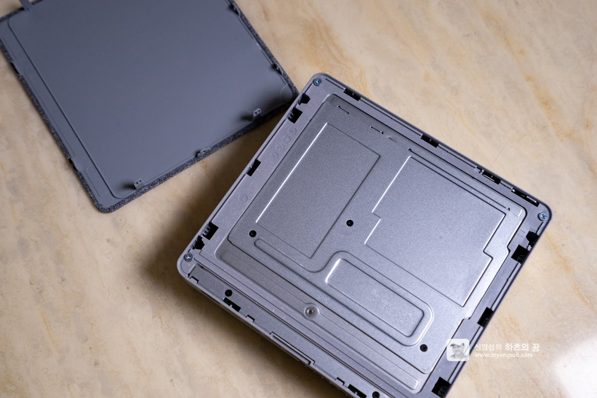 상판은 손으로도 쉽게 분리가 된다. 그리고, 3개의 나사를 풀면 메모리와 SSD를 추가하거나 교환할 수 있도록 구성되어 있다. 자주 하는 작업은 아니지만 메모리, SSD 교체가 손쉽다는 것은 그만큼 설계가 잘 되어있다는 것을 말해준다.