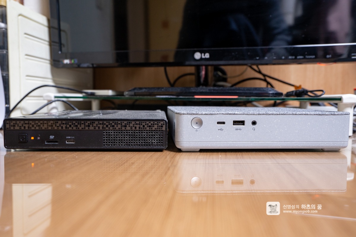 지금까지 사용해오던 '리바 원(ECS LIVA One) i5-7600T' 제품과 '레노버 아이디어센터 Mini 5i 90Q70006KA'를 비교해 보았다.