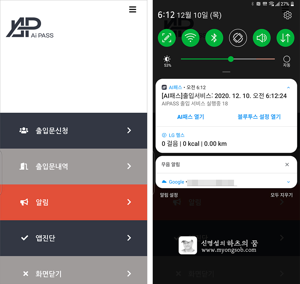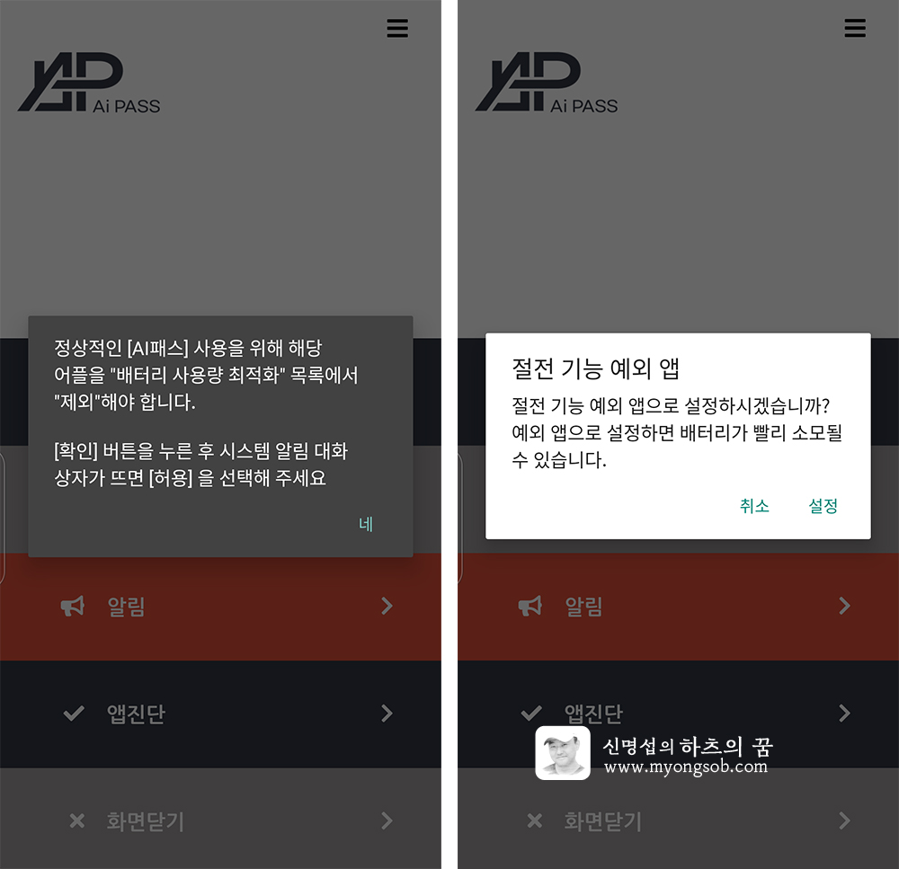 위 이미지 우측에서 보듯이 'AI 패스' 앱은 상시 실행이 되어서 무엇인가를 열심히 하는 것을 볼 수 있다. 출입문에 접근했는지 체크하는 것인지는 모르겠지만 처음부터 이 부분이 의심스러웠다.