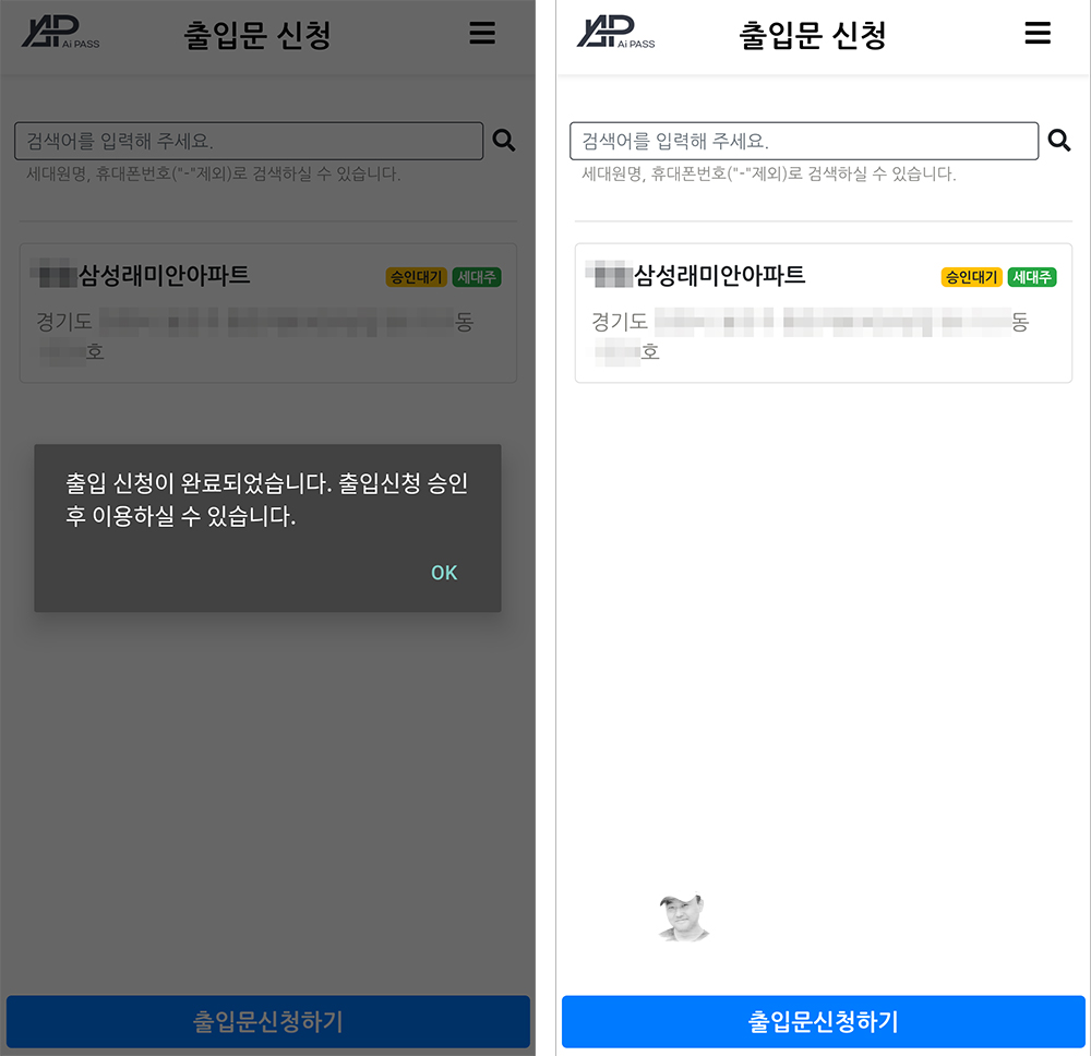 여러가지 의심스러운 부분이 있었지만, 아파트 출입 신청을 했다. 일반적으로 하루 정도가 지나고 문제가 없으면 출입 승인이 된다.
