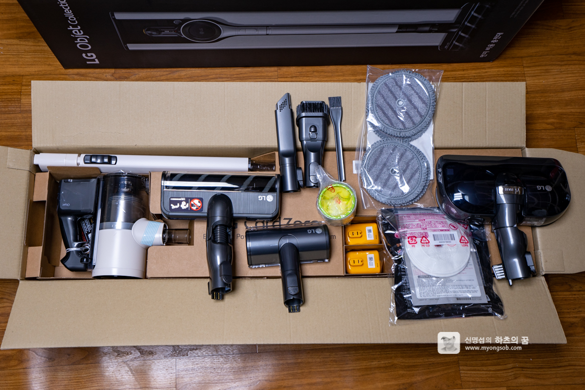 LG A9S 씽큐 오브제컬렉션 무선청소기는 매우 다양한 청소헤드와 툴 등을 제공한다. 파워드라이브 흡입구(청소 헤드)는 마루 청소용, 침구 청소용, 물걸레 청소용 헤드를 제공하여 필요한데로 사용할 수 있다.
