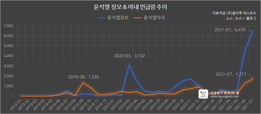 2019년 9월 '조국 딸' 관련하여 상당히 많은 기사와 블로그 글이 발행되었다. 이것을 계기로 '공정'이란 키워드가 청년을 중심으로 상딩히 대두되었다. 윤석열 이슈는 장모 구속과 아내 김건희 씨 논문 이슈로 최근 급격하게 관심을 받고 있다. 윤석열 이슈는 장모의 사문서위조, 아내의 뇌물성 협찬 의혹 등 다수 건이 검찰 조사 및 재판 중이어서 한동안 상당한 기사가 쏟아질 것으로 보인다.