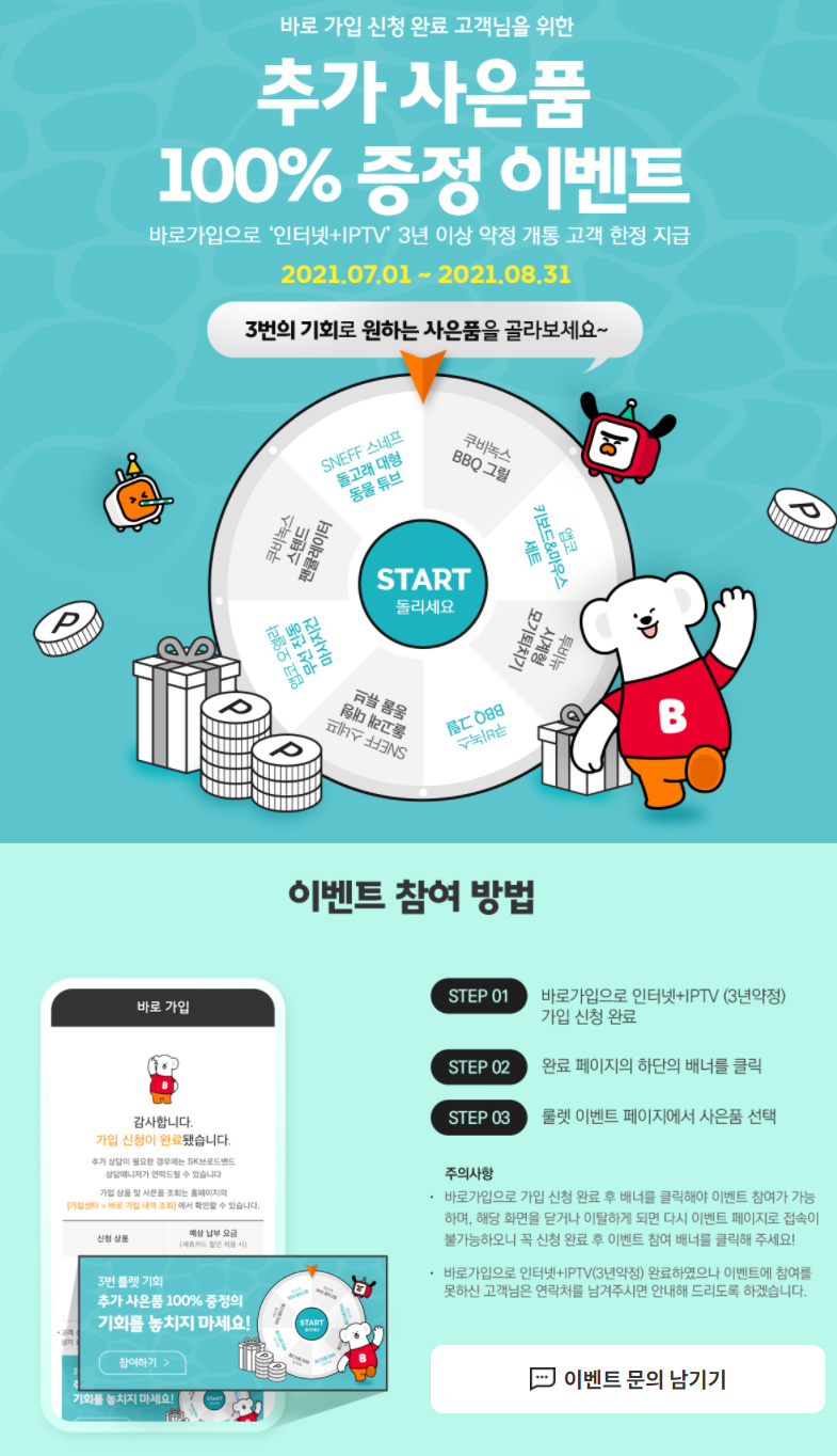 SK브로드밴드 공식 가입센터 B다이렉트샵, 공식 사이트라 가능한 할인과 사은품