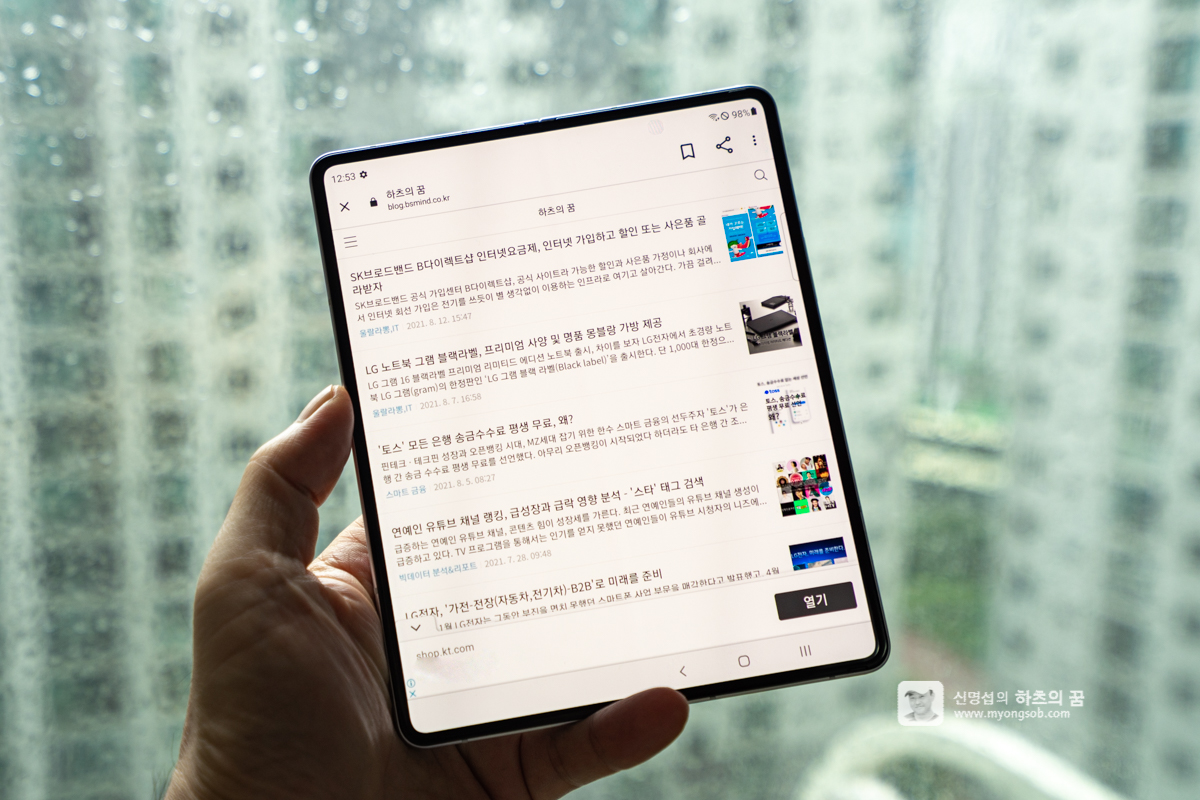 해당 스마트폰을 직접 사용한 지 2일이 지났지만 손에 쥐는 것은 아직 쉽지 않다. 접어서 사용하는 것은 문제가 없지만 펼쳐서 사용하는 경우 제대로 쥐지를 못하고 있다. 좀 더 사용해야 적응이 될 듯 하다.