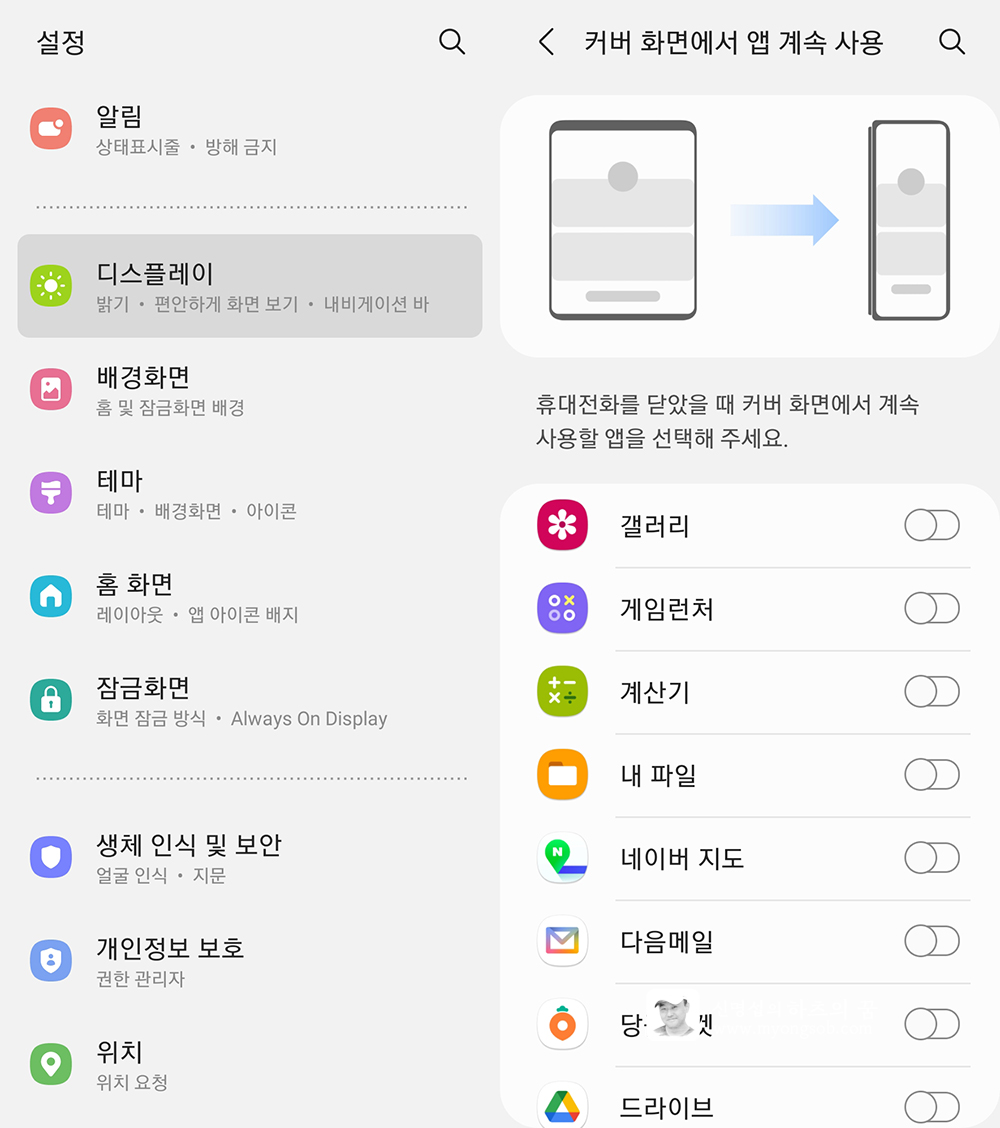 3. 갤럭시 Z 폴드3 '커버 화면에서 앱 계속 사용' 설정