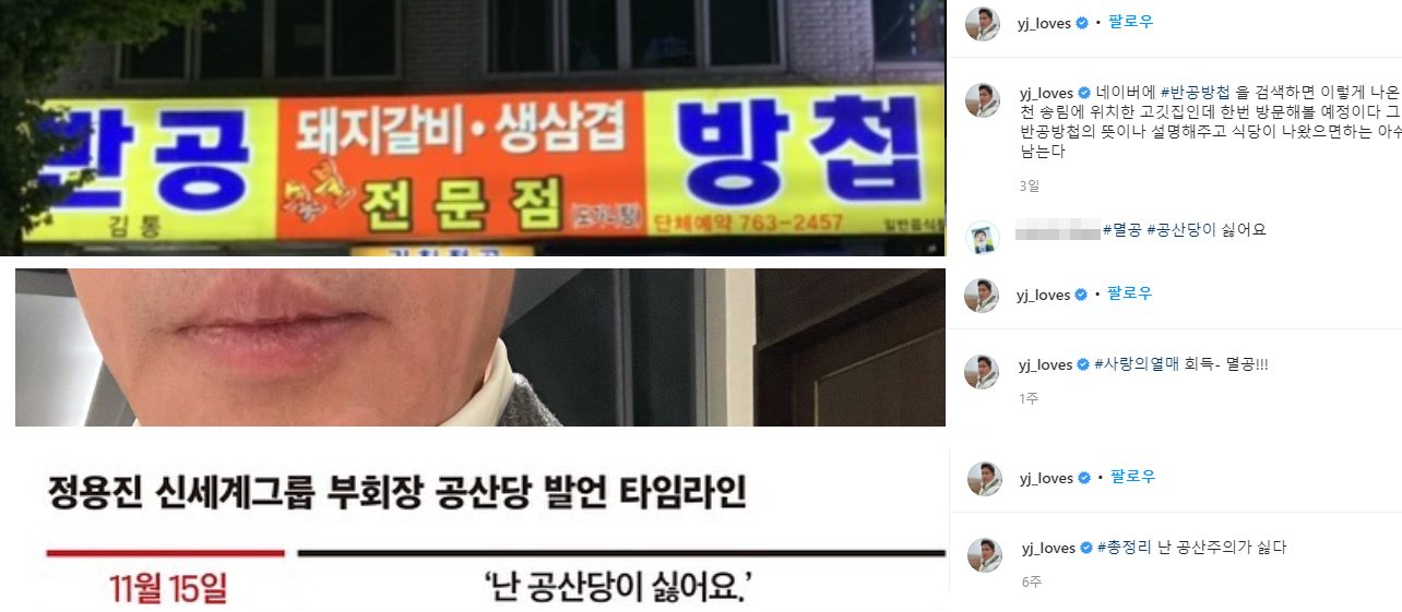 정용진, SNS에 “나는 공산당이 싫다” 연이어 올려