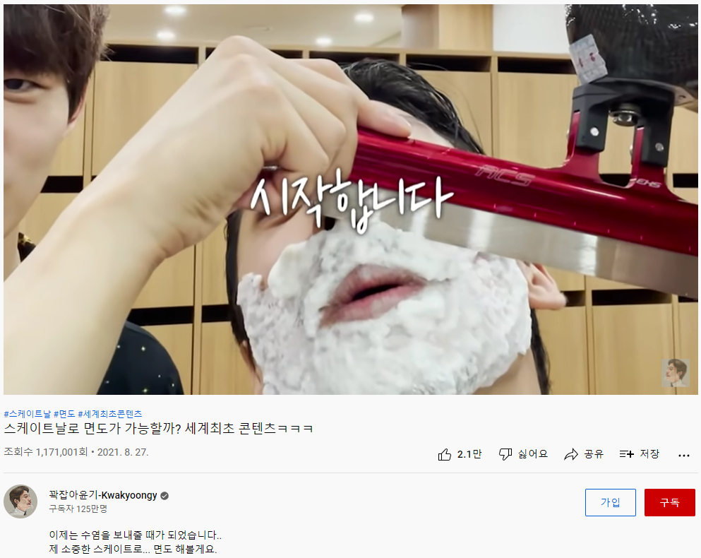 | 2022-02-13 03:01 | 2022-02-13 03:01 | 스케이트날로 면도가 가능할까? 세계최초 콘텐츠ㅋㅋㅋ | 374,158 |