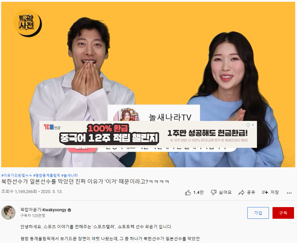 그런 그가 또다시 화제가 되고 있는데, 바로 그가 운영하는 유튜브 '꽉잡아윤기(바로가기)' 채널이 100만 구독자를 달성하면서다. 놀라운 것은 불과 올림픽 전 구독자 10만명대의 채널이 10일만에 100만명 구독자로 급증했다는 것이다.