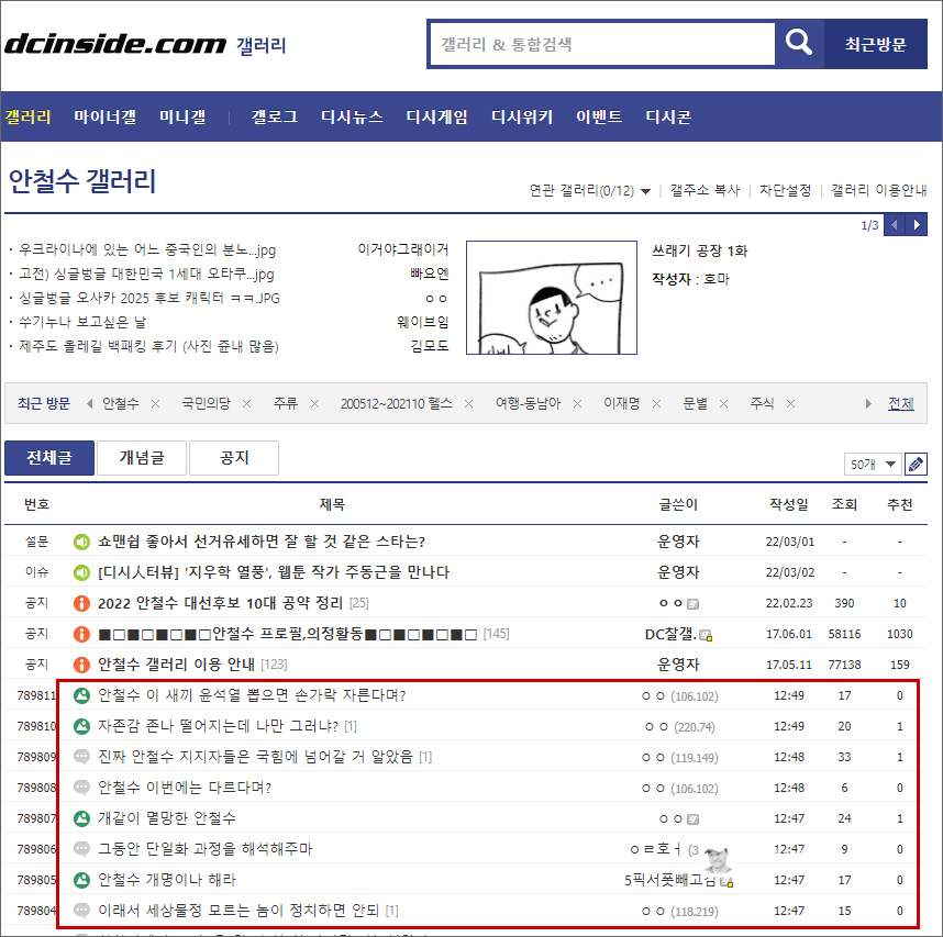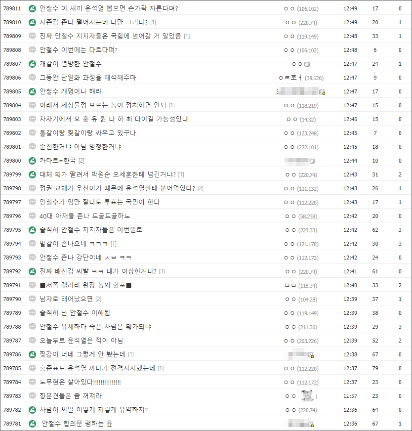 디시인사이드 안철수 갤러리에도 실망과 불만의 목소리가 가득하다. '손가락 자른다', '자존감 떨어져', '개같이..' 등 심각한 게시물도 상당히 많다.