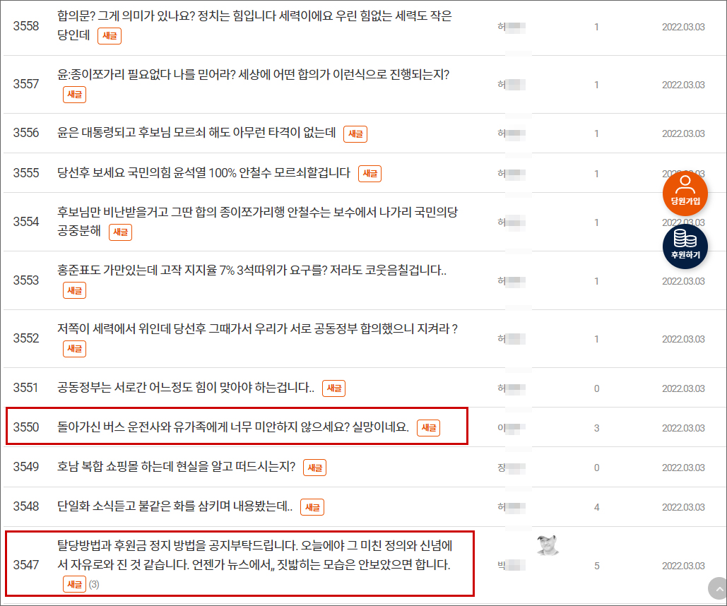 여전히 지지해야 한다는 의견과 실망의 목소리가 엇갈린다. 특히 국민희힘 윤석열 지지자들이 대거 가입해서 분란을 일으키고 있다는 의심의 글도 다수 존재한다.