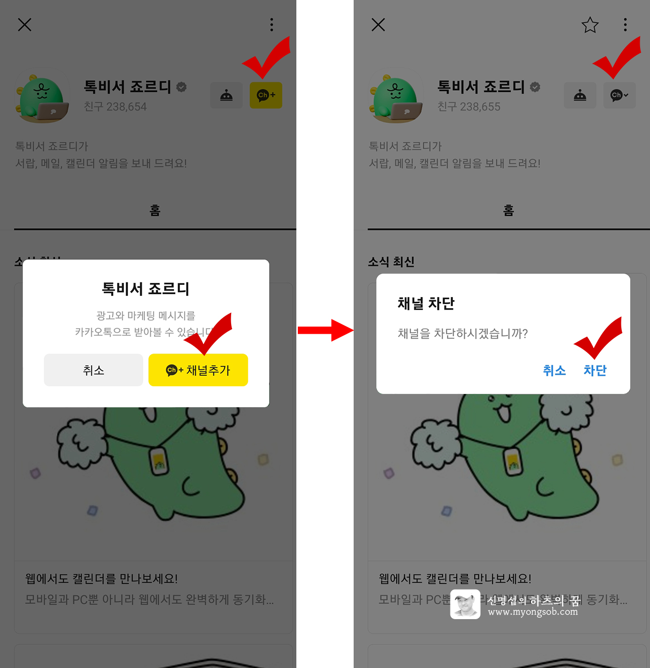 카카오톡 톡캘린더, 톡비서 죠르디 차단 방법