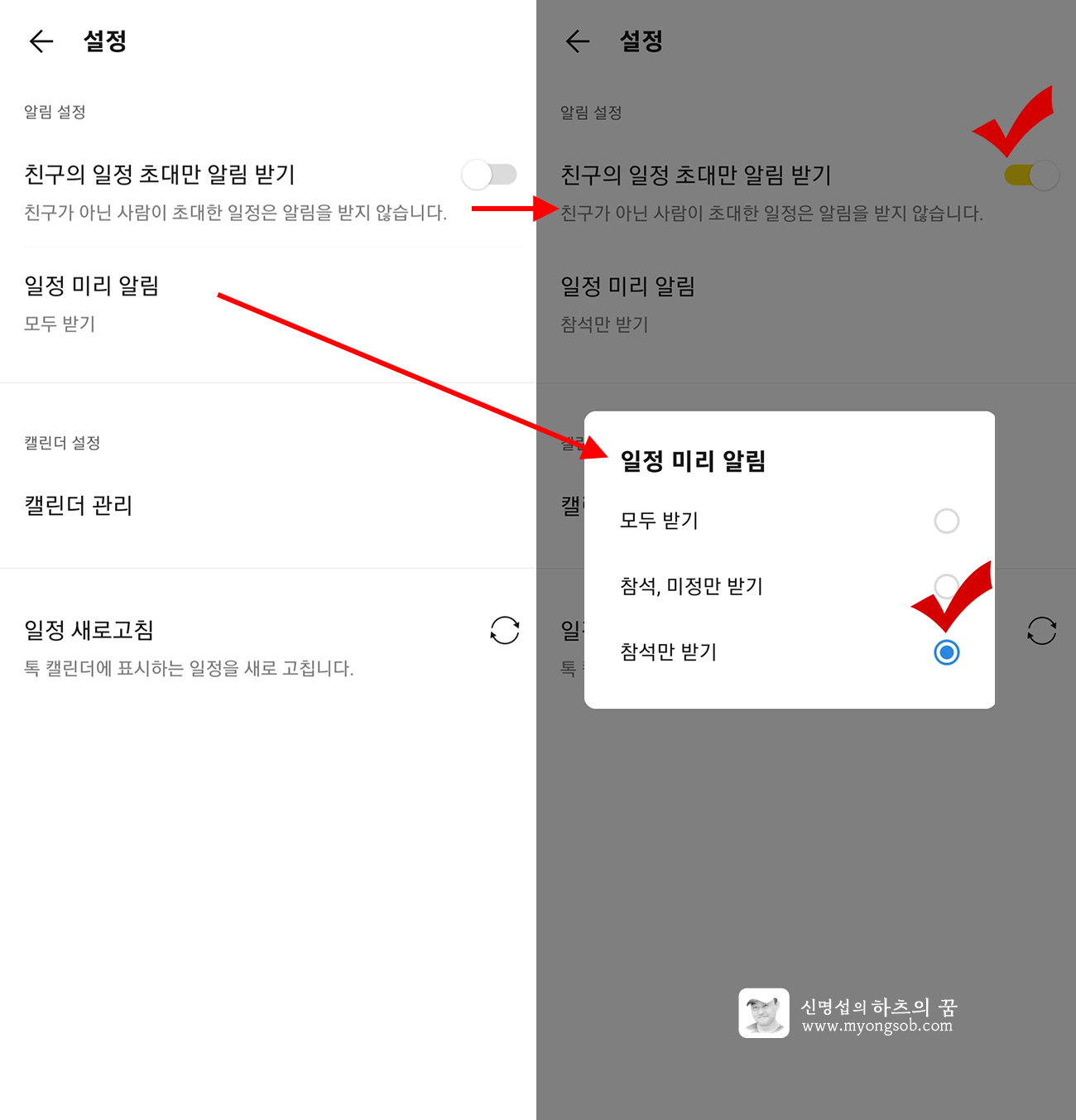 그리고, 일정 미리 알림을 "참석 만 받기"로 설정한다.