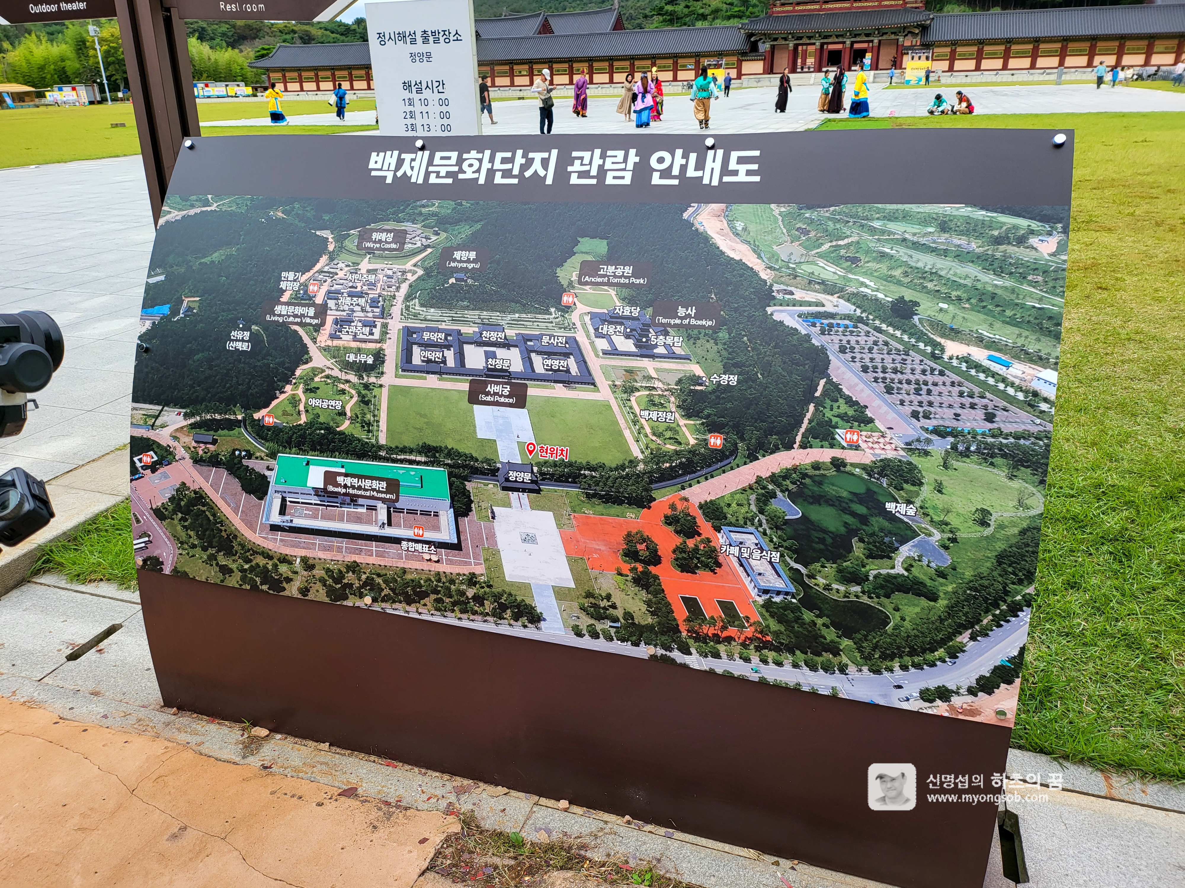 대백제전의 주요 무대인 '백제문화단지'에 도착했다. 이 곳은 백제시대 왕궁인 '사비궁', '위례성' 등이 있고, 서민들이 생활했던 생활문화마을 등 백제시대 생활을 살펴볼 수 있는 역사문화 테마파크이다.