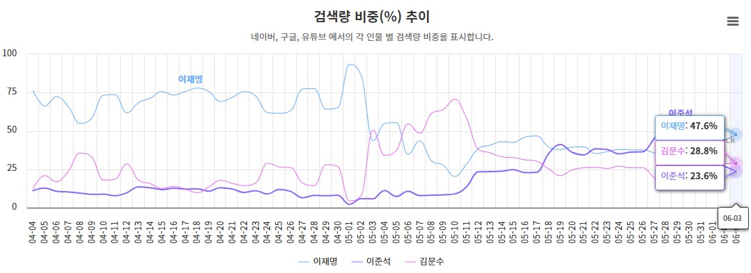 최종 선거 결과는 개표가 완료되어야 확정되겠지만, 사전 데이터 분석을 통해 미리 엿본 대선 판세는 온라인에서의 강세가 실제 득표로 이어진다는 점을 명확히 보여주고 있다.